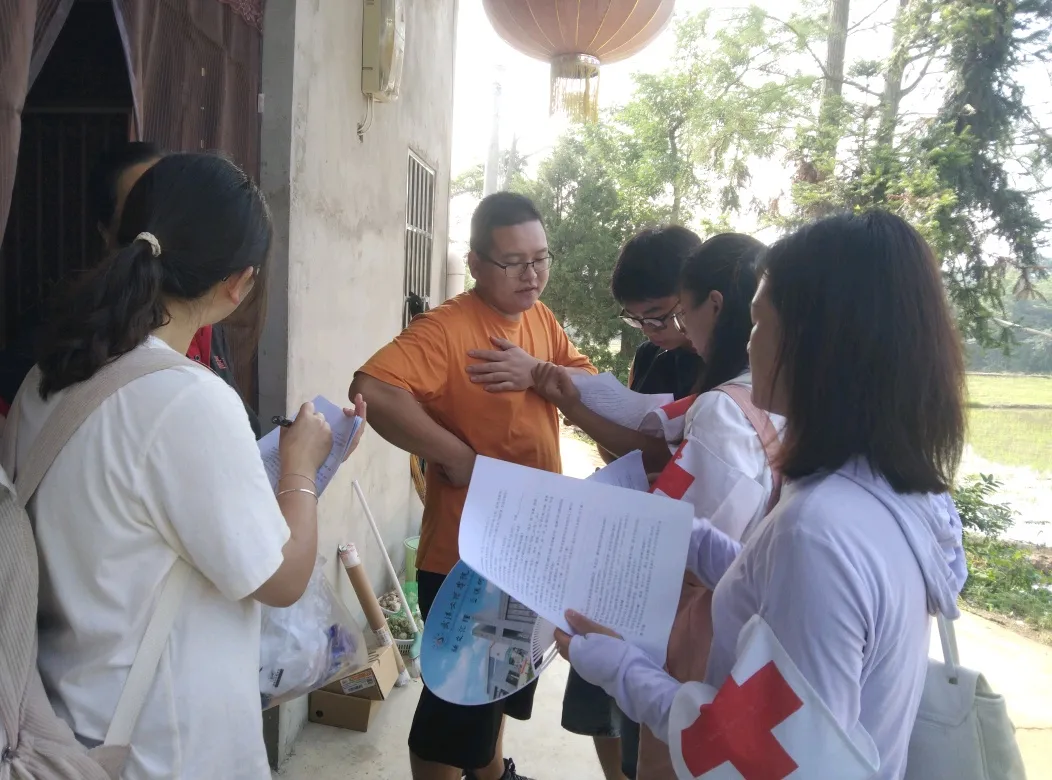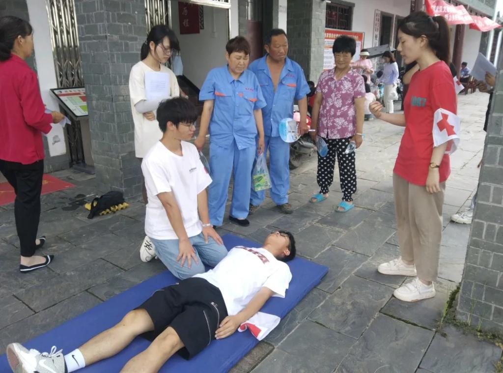 2023年6月26日上午,“医路前行”团队分成3个小分队分别向杜堂村、崇杰村、柏叶村出发进行调查,通过走访调查了解到当地长期居住的居民年龄普遍在60岁以上且文化水平都不高,因此决定以问答的形式完成问卷。根据问卷结果发现当地高血压、高血糖、高血脂三高问题比较突出,村民对烧伤、烫伤、溺水、触电等紧急情况的处理还不够了解。针对这些情况,决定在27日开展义诊活动,本次活动以测血压、血糖、健康咨询以及对烧伤、烫伤、溺水、触电等紧急情况处理和海姆立克、心肺复苏急救知识的宣讲为主。