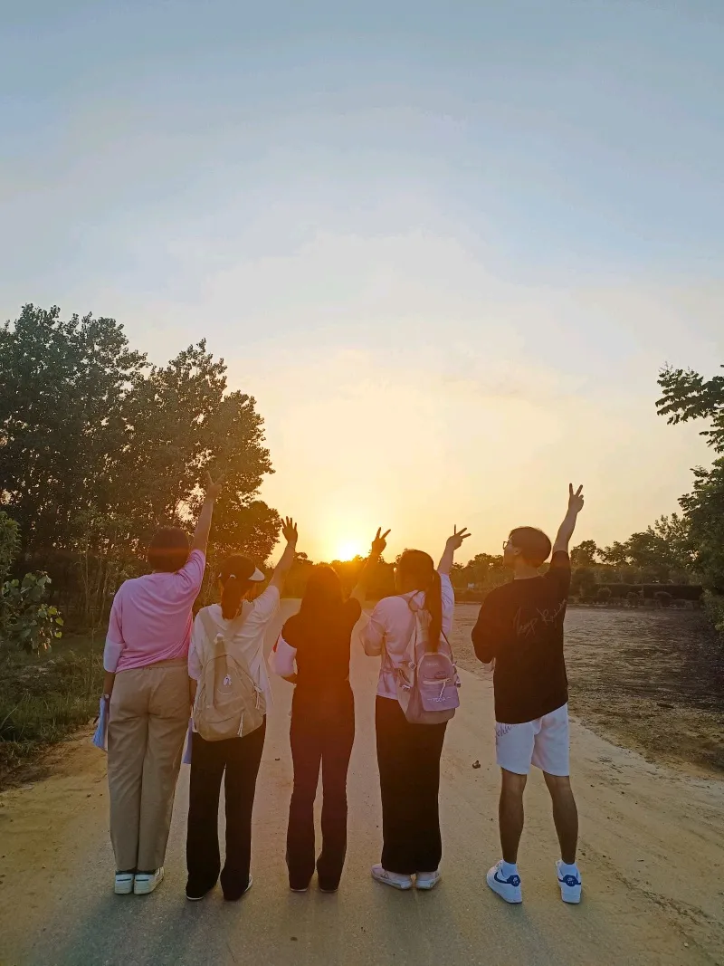 带队老师与同学们一起走进乡村