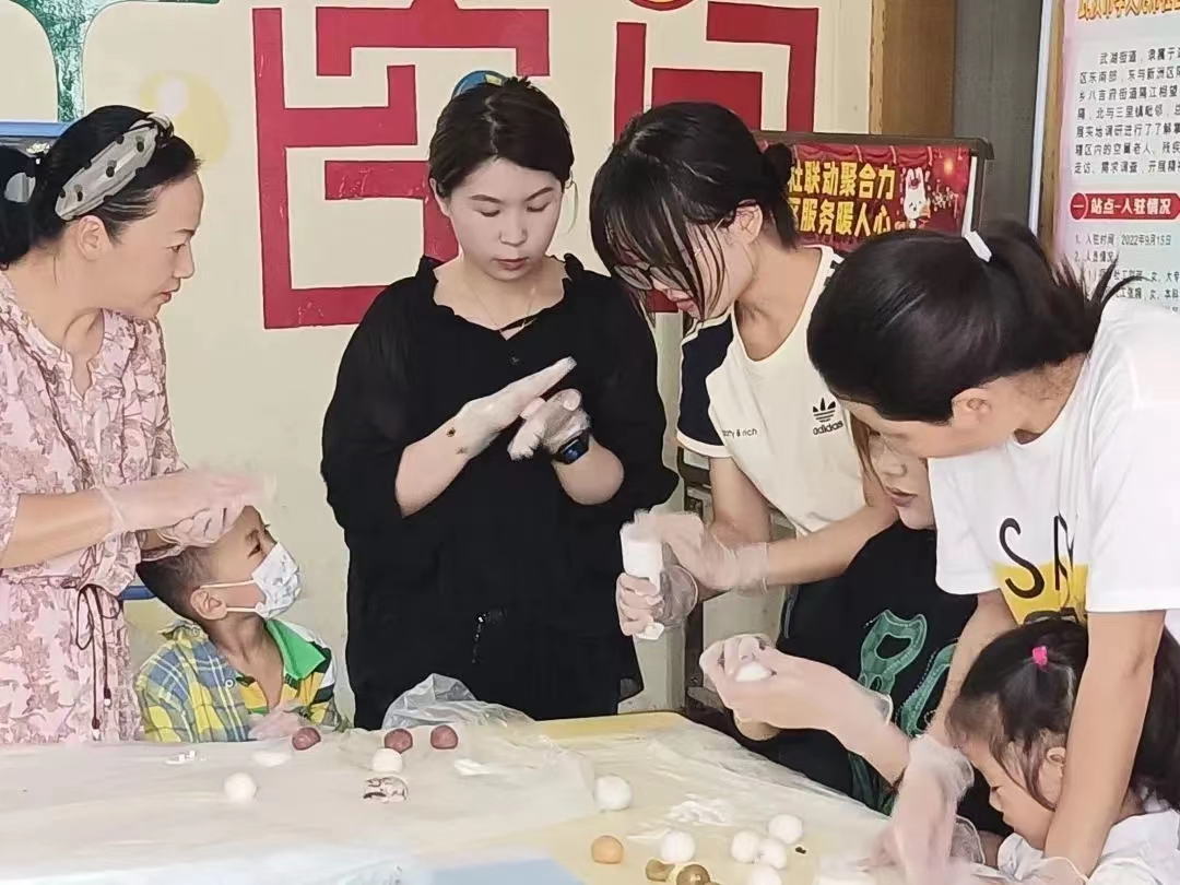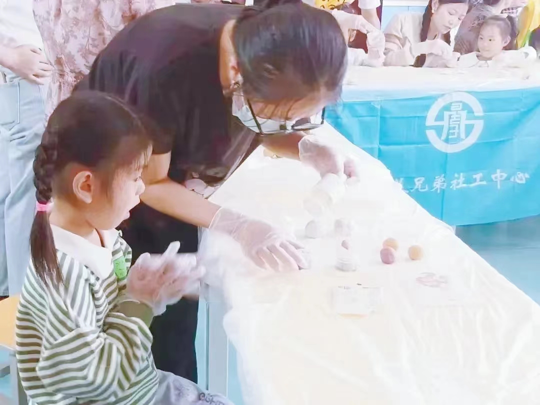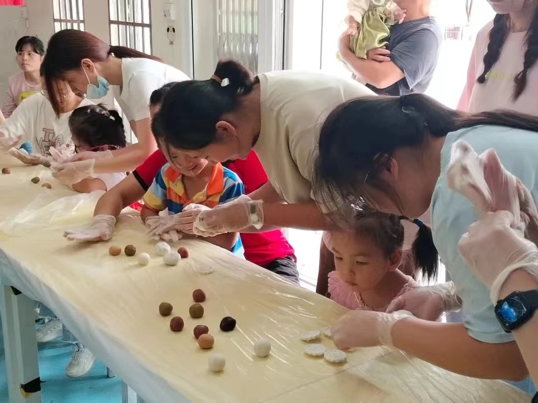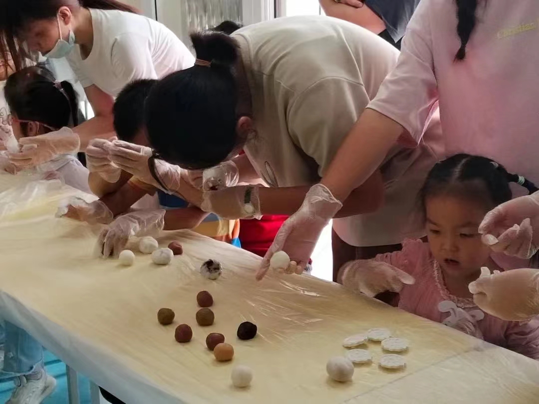 中秋节自古便承载着“人月两团圆”美好愿望,圆圆的月饼更是承载着对团圆、爱的种种寄托。志愿者们的言传身让孩子们体验传统文化魅力,增强个人涵养,感受到了社区的温暖。
