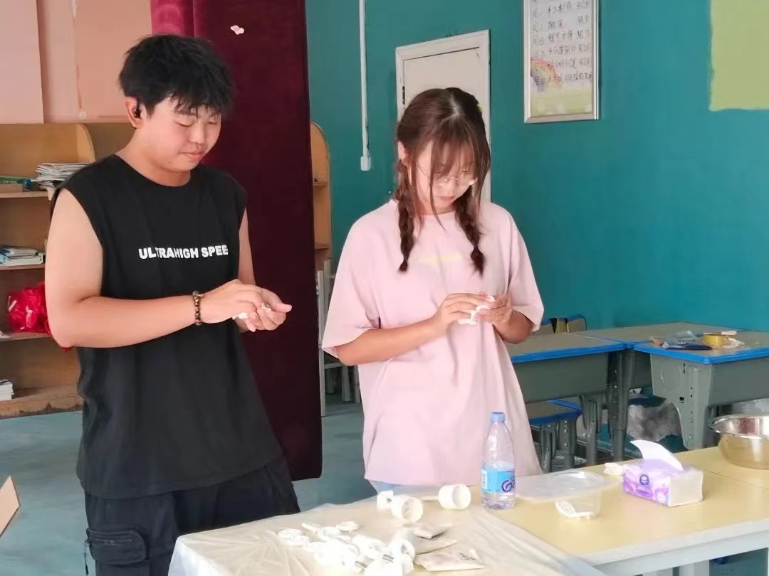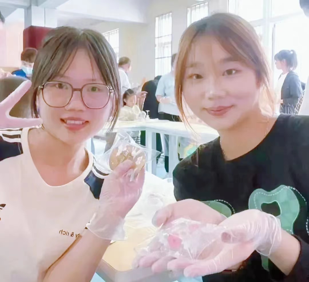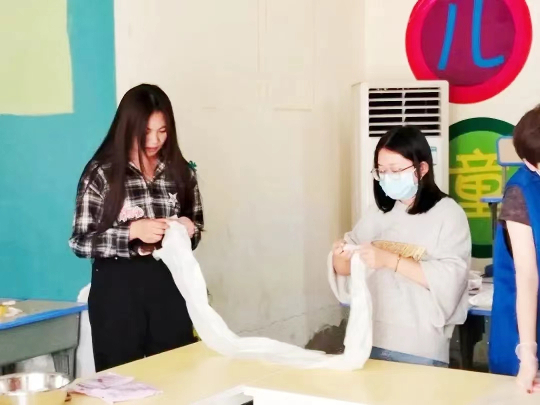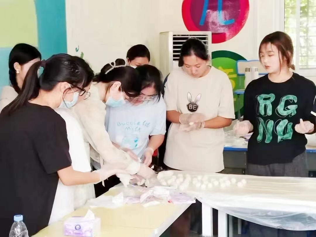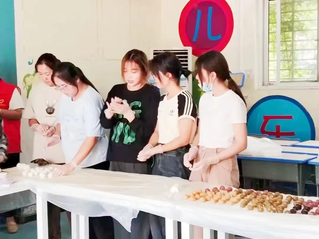 志愿者们也发挥自己的聪明才智、大显身手。制作过程中,同学们讨论着过节的习俗和关于中秋的记忆,气氛十分活跃,欢声笑语不断。