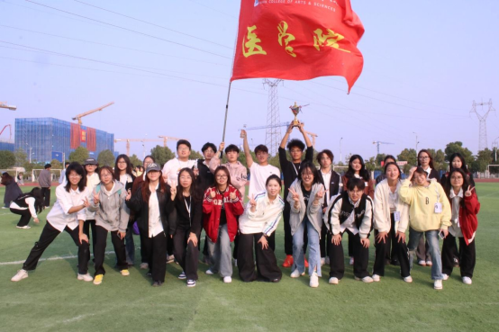 闭幕式后,yl23411师生齐聚田径场合影,大家难掩收获佳绩的喜悦与激动,温暖的阳光下,院旗随风招展,大家齐声高喊:yl23411,加油!