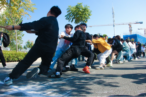 尘土飞扬,十四个身影凝聚成一股不可阻挡的力量,拔河绳在他们手中仿佛有了生命,向着胜利的方向呼啸前进。