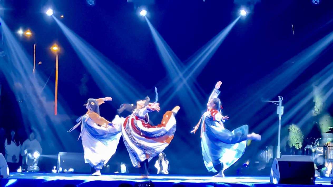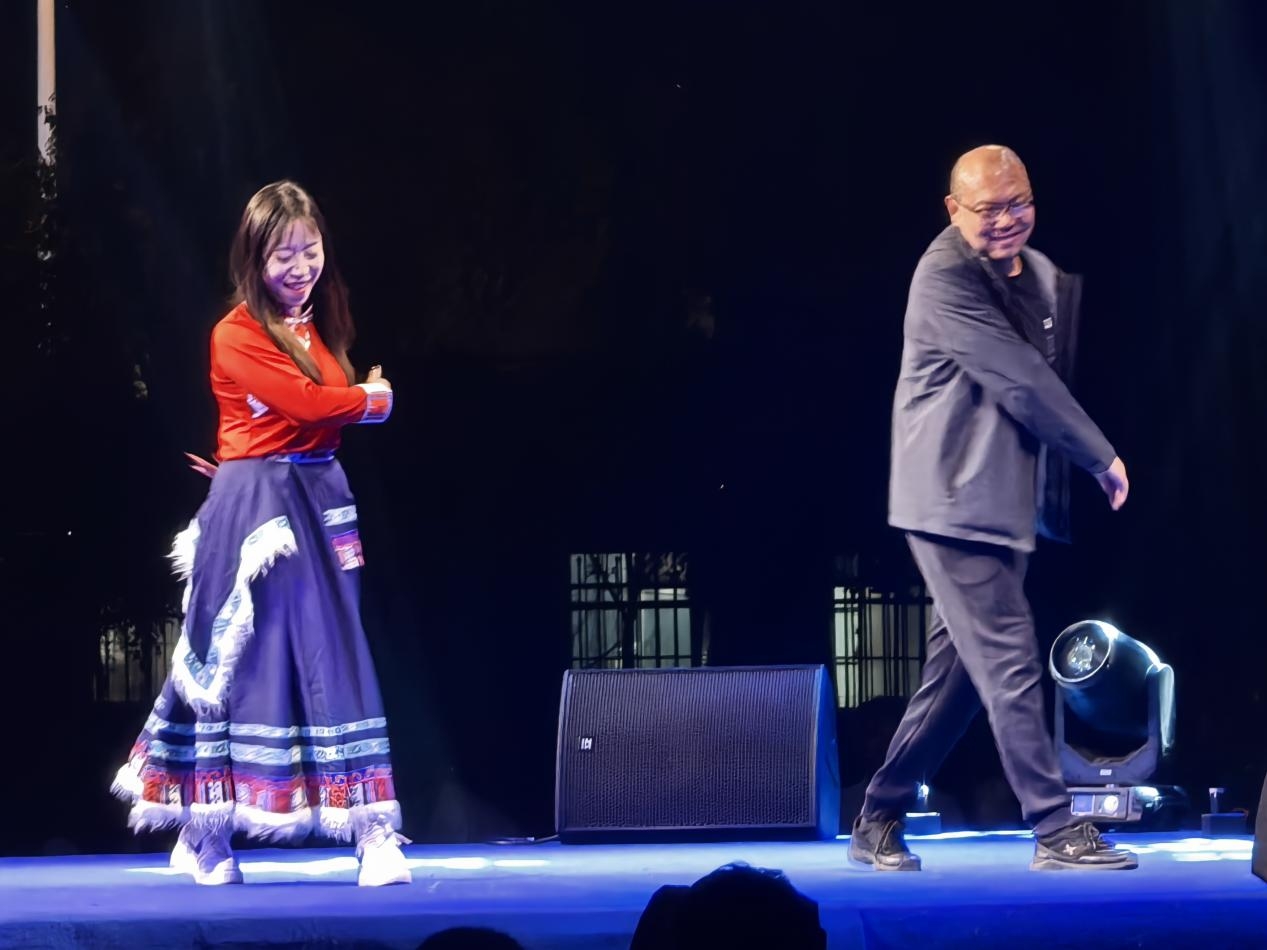 观众们随节奏挥舞着荧光棒,欢呼声、歌声、笑声相互交织。各民族联欢,大家手牵手,在欢快的舞步和蹦迪节奏中,交织出团结与欢乐的画卷。在这特别的夜晚,大家因音乐而聚,因“福籽同心,爱中华”的信念而紧紧相连,共同书写着属于yl23411学子的美好篇章,也让民族团结的情感在这美妙的音乐中扎根发芽。
