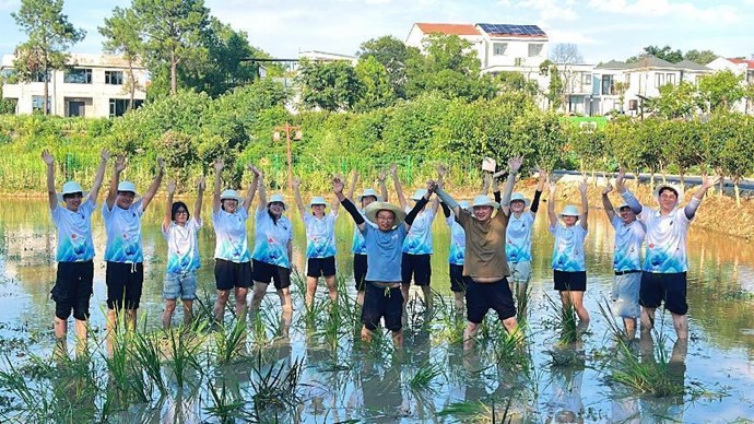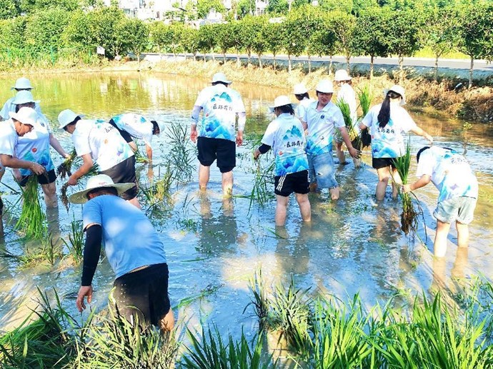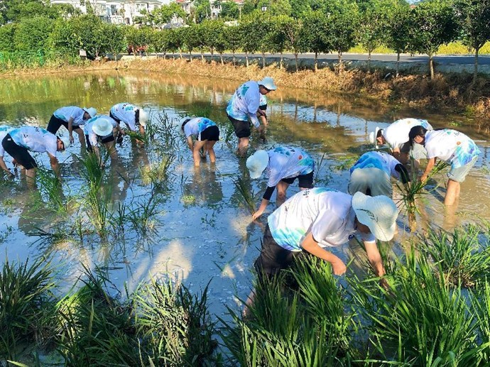 经过半个小时的辛勤劳作,大家圆满完成任务,嫩绿的秧苗在微风的轻拂下摇曳。大家的脸上始终洋溢着满足和自豪的笑容。这不仅仅是对土地的一次亲密接触,更是对农耕文化深刻理解的过程,也实际为助农做出了应有的贡献。