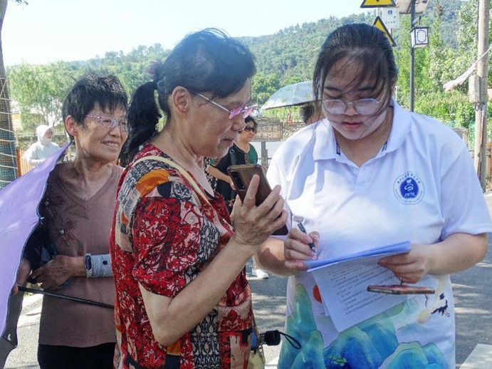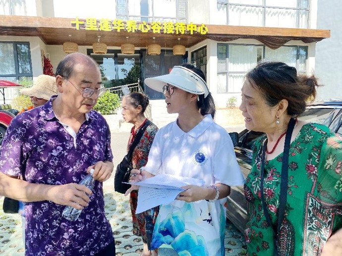上午8点,团队分三组前往火焰村,诚邀村民和来到火焰村养心谷的游客参与问卷调查。问卷调查的内容涉及统计对乡村振兴战略的意见、当地农村农旅结合发展的建议、农村基层医疗体系发展现状等10个问题。