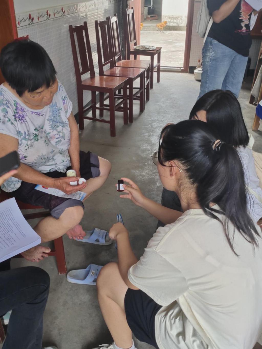 在走访当地的途中,他们沿路向村民们发放调查问卷并向村民咨询基层卫生服务、身体状况等方面的情况,收集调研信息。团队走访农户共计150余家、发放宣传册700余册。团队队员努力学习当地方言的发音习惯,提高在当地生活、实践时与人沟通和交流的技巧,用实际行动深入基层,贴近民心。