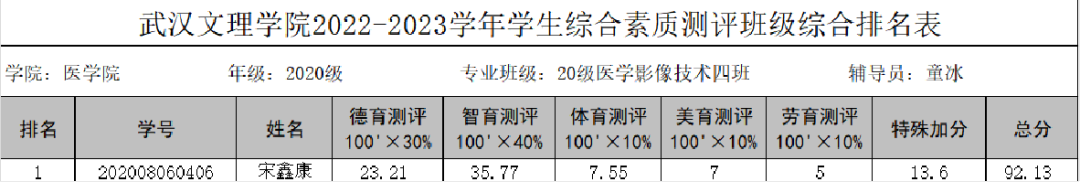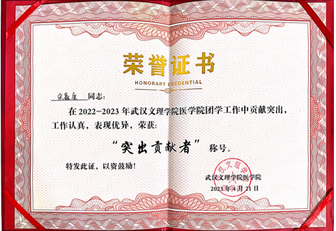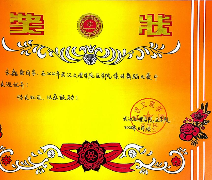 2020级影像技术专业宋鑫康荣获校2022~2023学年“和润综合奖学金”
