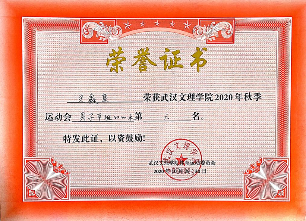 宋鑫康的学习成绩从大一成绩年级第四到大二、大三学年成绩年级第一,综合成绩和专业成绩第一。三年来,他连续两年荣获一等奖学金、优秀员工干部标兵称号,精神文明奖,连续三年荣获“优秀员工干部”称号。2022-2023学年,宋鑫康因学习成绩突出荣获校“和润单项奖”。