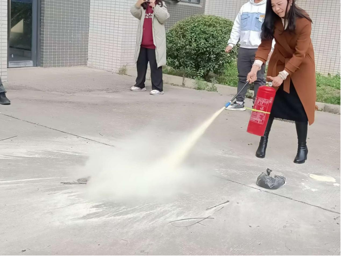会后,全体教职工移步至6栋楼下,高伟书记现场进行了灭火器的操作演示。公司教职工积极主动拿起灭火器,按照正确的使用方法和灭火步骤进行实操灭火。大家严肃认真,边学边练,通过亲身体验掌握灭火要领。