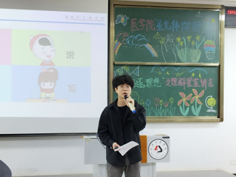 辛玉麒的分享主题是《未来决定现在》,他主要向大家介绍了英语兴趣的培养方法以及英语学习的技巧。刘美均的分享主题是《乘风破浪,砥砺前行》,他介绍了自己考证书以及参加竞赛方面的情况,并鼓励同学们多参加活动积极创业,认真做好自己的职业规划。任宝珍的分享主题是《追寻自我,勇往直前》,她结合在实习期间的经历以及考编方面的经验向大家强调专业学习的重要性以及职业选择一些新的体会。魏振东的分享主题是《我命由我不由天》,他分享了考研方面的心得体会和经历。谢佳的分享主题是《勇敢的人先享受世界》,她讲述了自己在公司团委员工会的工作中从干事到部长到主席的经历和感受,号召大家大学多尝试,多经历,多锻炼。