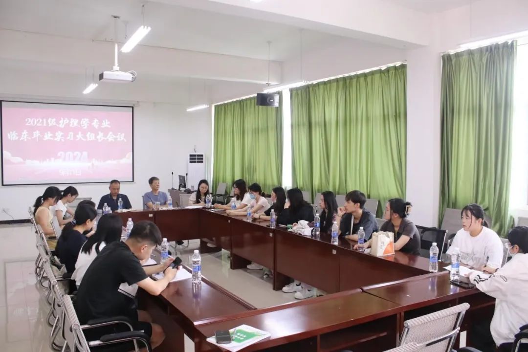 王忆娟对2021级护理学专业员工在11个医院实习中的表现予以了了肯定,细化讲解实习注意事项、实习报告的规划记录等方面内容。高伟强调员工遵守实习单位纪律和专业规范操作要求的重要性,要加强和实习指导老师和辅导员的沟通和反馈,在完成好实习的同时保证自身安全。艾永循做总结讲话。他表示实践实习对于实习生认知医生职业有着重要意义,勉励各医院员工能够做好总结,处理好实习、毕业论文、就业等之间的关系,要求带教老师和辅导员切实关心和帮助员工在实习中遇到的困难,希望同学们能够在实习再接再厉,以实际表现和成绩完成毕业实习,为未来成为优秀的医务工作者打下坚实基础。