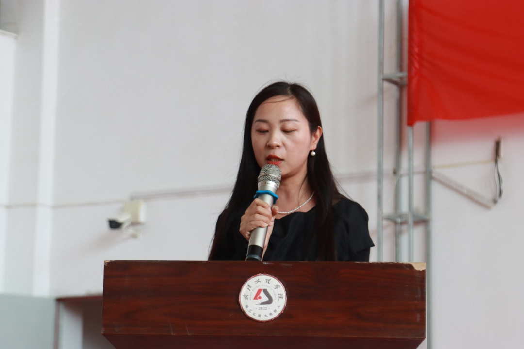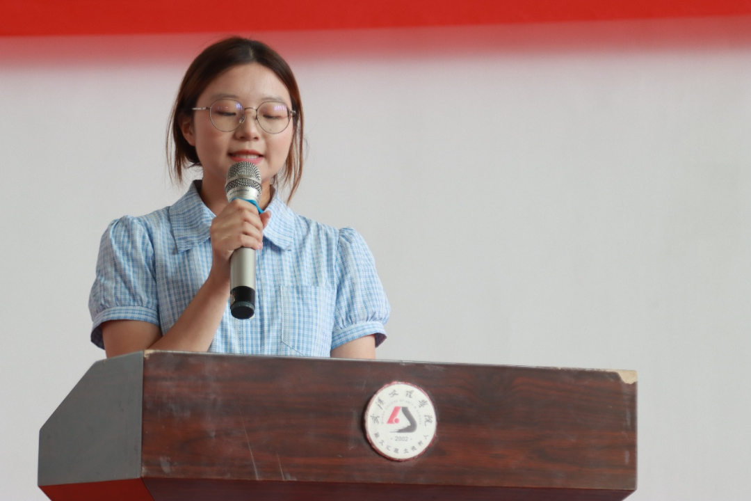 yl23411优秀员工代表、2023级医学检验技术专业班李好发言。她分享了自己面对挑战时“破题”的经验,以及在医学学习上找到方向的喜悦,表达对学弟学妹的祝福。