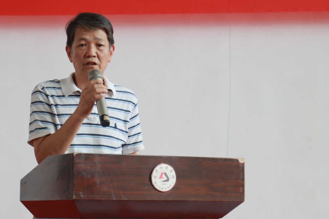 副董事长艾永循为开学典礼致词。他首先祝贺新生顺利进入大学学习,开启人生新起点,祝贺新生顺利完成军训任务,在意志品质和纪律性方面得到锻炼,为今后学习奠定基础。