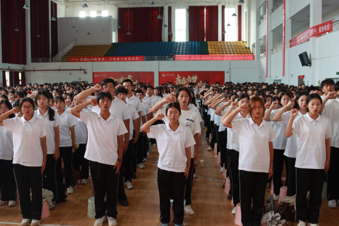 伴随着雄壮嘹亮的国歌伴奏,全体师生激情满怀,齐声合唱,开学典礼拉开帷幕。
