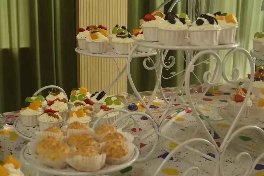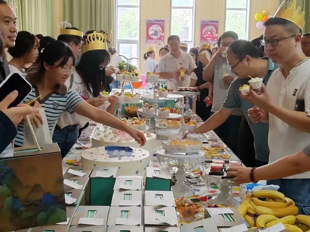 游戏竞赛和自由畅饮、品食环节将活动推向了高潮!现场,老师们放松着心情,欢声不断,笑语绵绵。有的边品尝着美食边与他人分享趣味的话题;有的边排队等候参加游戏项目边为参与竞技的老师加油、喝彩;有的聚在一起合影纪念或者拍摄精美的蛋糕、茶点照片;有的在生日墙上留下自己祝福话语......在这个特殊的日子里,时间仿佛都停下了脚步。
