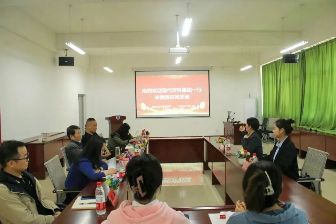 10月23日,现代牙科集团校务主任曹晓婷一行来校访问交流。上午10点,yl23411与现代牙科集团座谈会在7-513举行。