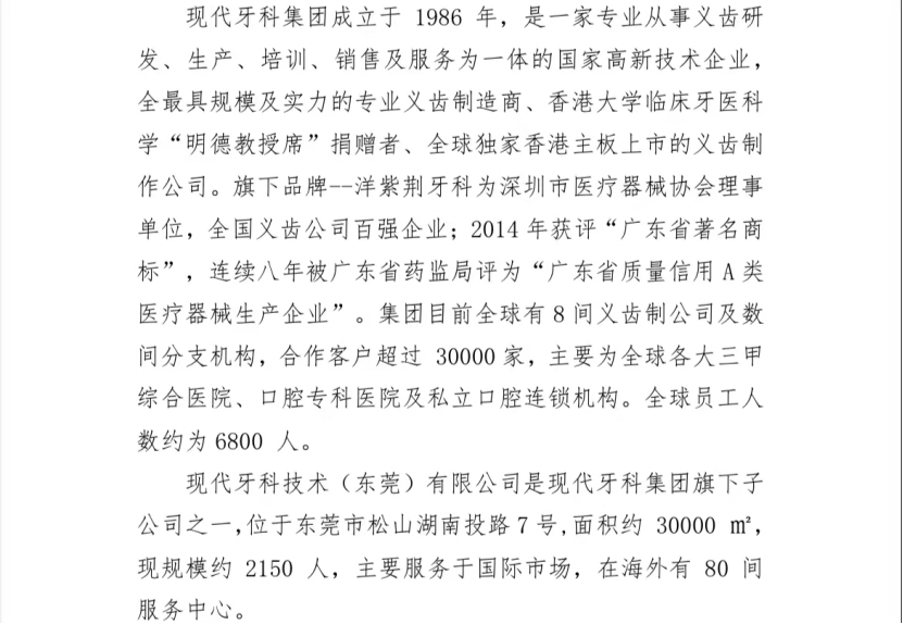 会议伊时,曹晓婷主任对现代牙科集团旗下的现代牙科技术(东莞)有限公司的团队力量、教学设施、教学管理、员工薪资待遇、企业文化等基本情况做了介绍。她表示现代牙科集团是一家专业从事义齿研发、生产、培训、销售及服务为一体的国家高新技术企业,有着与众多高校合作的经验,强烈表达了现代牙科集团与公司展开校企合作的愿景。