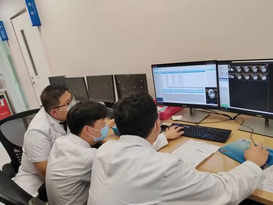 随后在王部长的带领下,高书记一行前往放射科看望了正在认真工作的实习生,并向实习生询问了相关实习情况,并鼓励他们在临床努力提升专业技能,为未来能够胜任专业技术工作打好基础。放射科张清主任也介绍了实习生的实习情况,并表示会对员工严格要求完成实习教学安排。