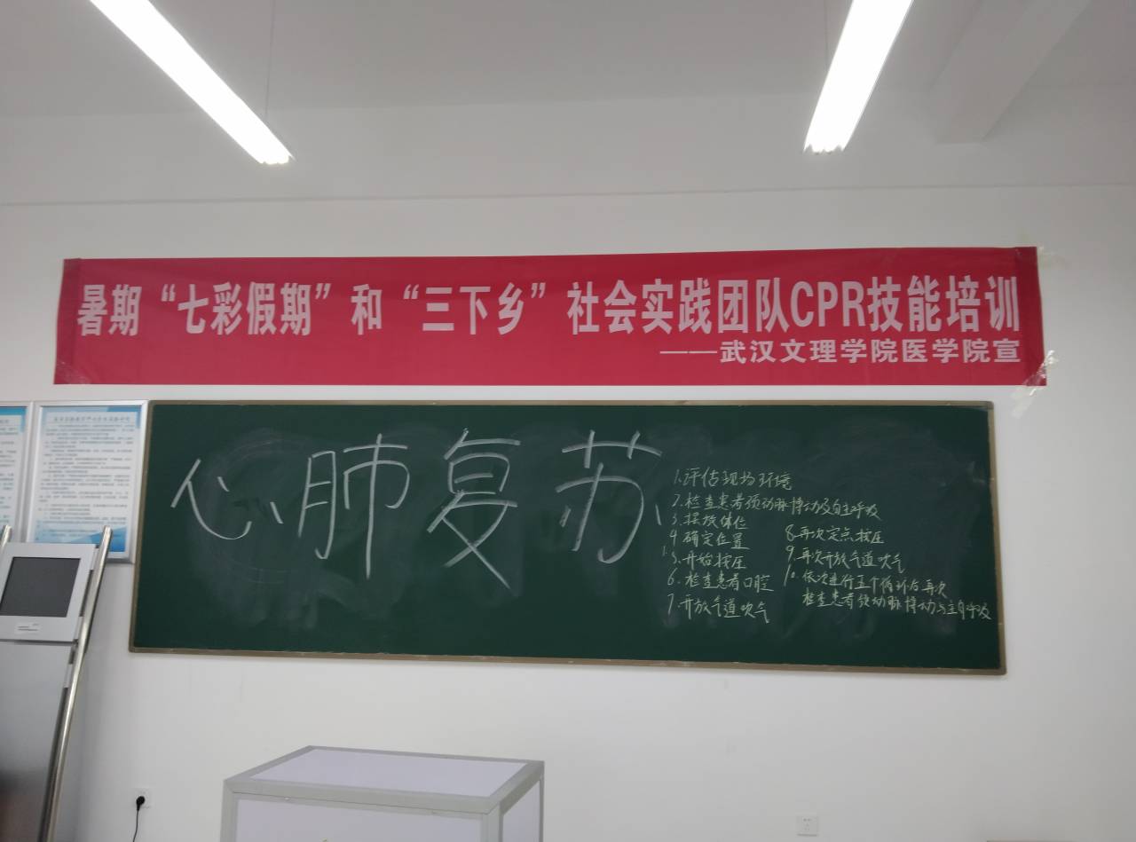 “第一篇章 一腔热血,医路前行”:6月13日,yl23411护理部喻莹老师为实践团队进行了实践急救知识理论培训,主要从中暑、心肺复苏(CPR)、海姆立克法急救法和AED的使用等进行讲解,让同学们对急救知识的掌握更加牢固,以此能够更好的为当地居民宣讲急救常识,同时为实践过程中有可能出现的突发情况做好应急准备工作。