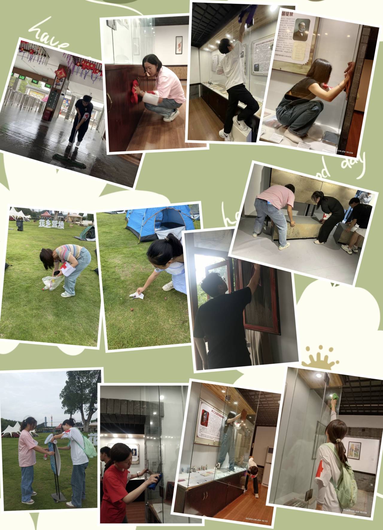 “第五篇章 青春有担当,志愿正当时”:6月29号,为进一步推进文明创建工作,营造整洁有序的景区环境,弘扬爱护环境的传统文化,树立文明新风,营造和谐景区氛围。yl23411三下乡团队积极响应社会服务要求,在实践期间利用间隙调整时间,积极与木兰花乡景区负责人联系沟通—在景区志愿服务一天,服务的内容有:捡拾垃圾、打扫景区研学基地陈列馆卫生、景区向导等。