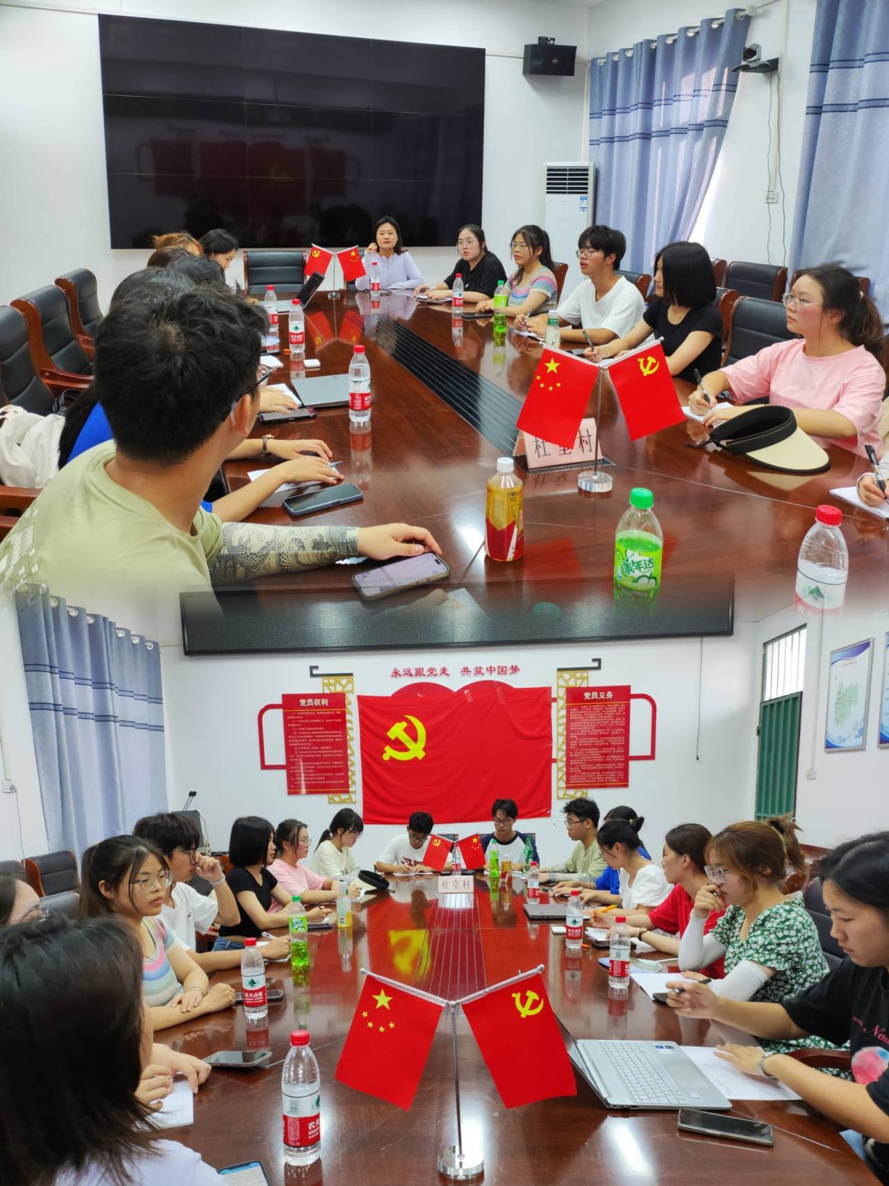 “第七篇章 总结”:7月1号上午实践团队在杜堂村村委会的会议室开展了此次实践活动的总结会,在为期七天的实践过程中,总结似乎成了团队之间的默契,每天完成实践内容之后,都会以小组的形式开展总结,总结发现的问题、遇到的困难、当地人的健康需求、实践路上的趣事等,不免让团队开展实践的路更加清晰明确。下午,公司党总支书记兼行政副经理高伟老师来到了实践地点,听取了实践团队近期工作汇报,向实践团队的工作进行了指导,以及向团队表达了最真挚的问候。