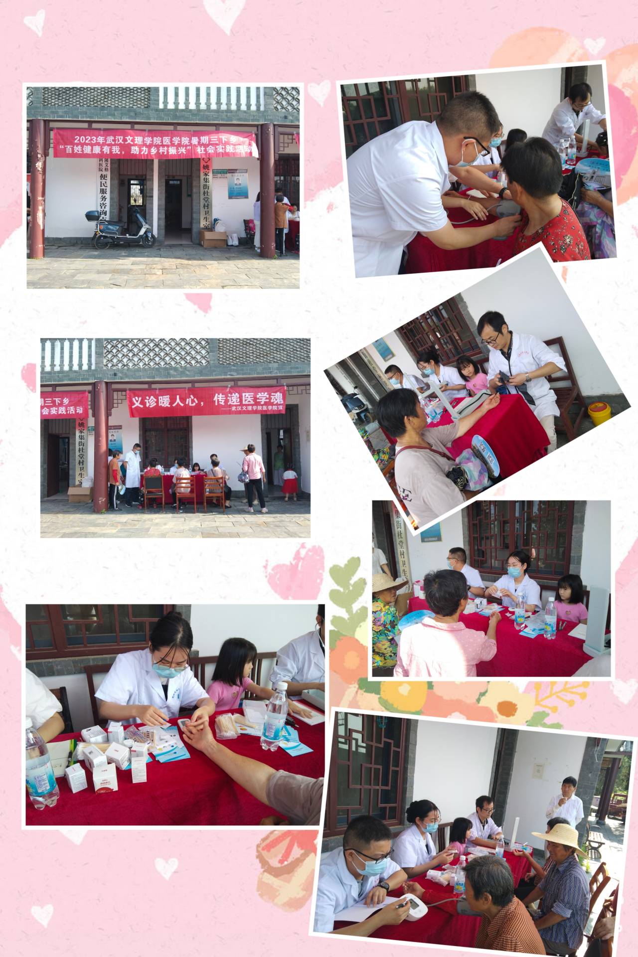 “千里之行,始于足下”,实践过程中也不都是一帆风顺的,历经了很多困难,团队成员一起齐心协力,出色的完成了一项又一项任务,短暂而又充实的暑期社会实践活动即将结束,同学们在此期间所累积的经验则是人生最宝贵的财富。社会实践是引导青年员工走出校门、步入社会、并投身社会的良好形势,作为当代老员工势必要抓住培养锻炼才敢的机会,提升自我服务社会的思想与意识。同时,要树立远大的理想,明确自己的目标,为祖国的发展贡献一份自己的力量。在活动最后实践团队与杜堂村村委会建立长久联系与合作、为后续继续推进乡村振兴,健康中国贡献自己的青春力量,秉承医学本心,以心医心,以爱传爱,至善至美。