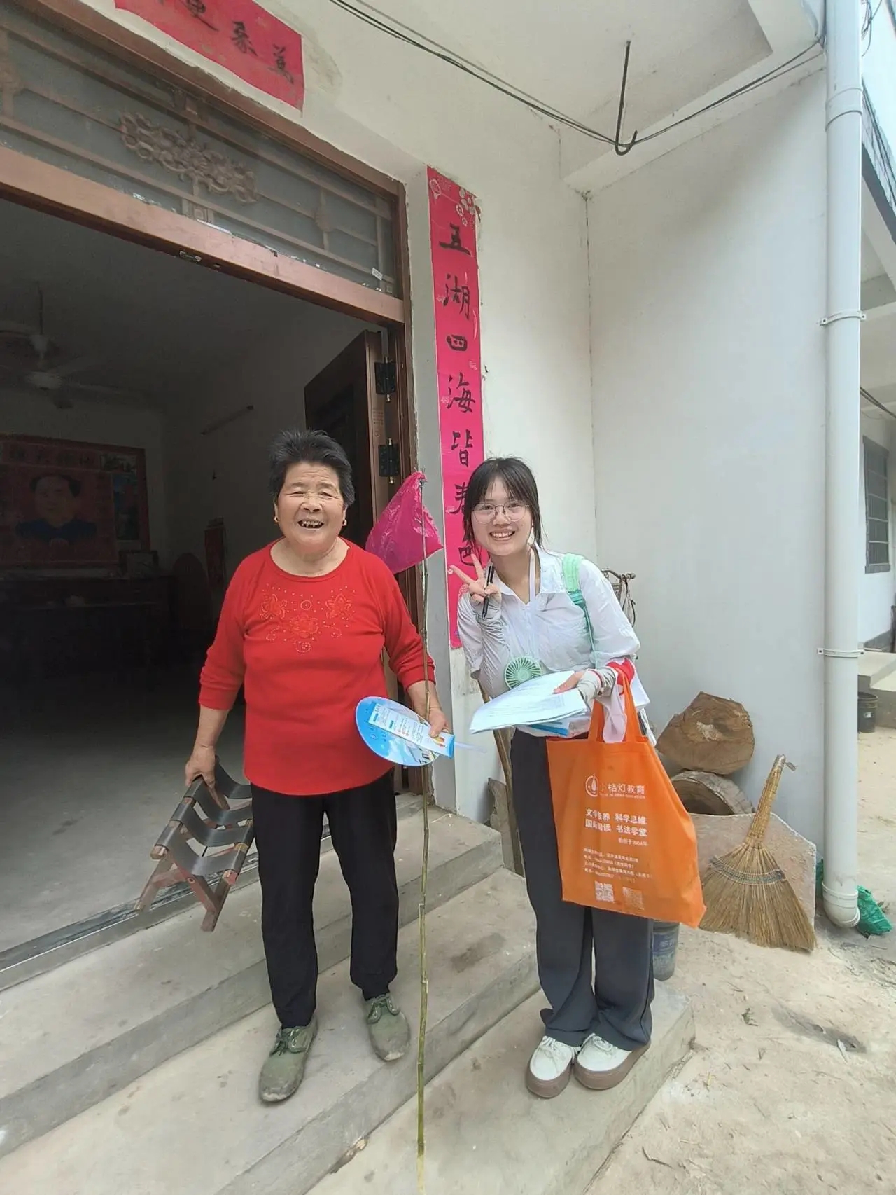 依旧是那条弯曲的乡间小道,依旧是那片分散的小屋,依旧是那群朴实的村民。不同的是他们对我们的支持,不变的是我们对他们的热心。 在这些天与他们的交流中,我们能感受到当地居民对我们的热情和友善,很多爷爷奶奶见到我们就与我们打招呼,表达他们对我们的关心,教导我们好好学习,做一个对社会有用的人,让我们为国家、为人民做贡献。在回访的最后,我们与当地居民进行了合影留念,这会是一段美好的回忆。