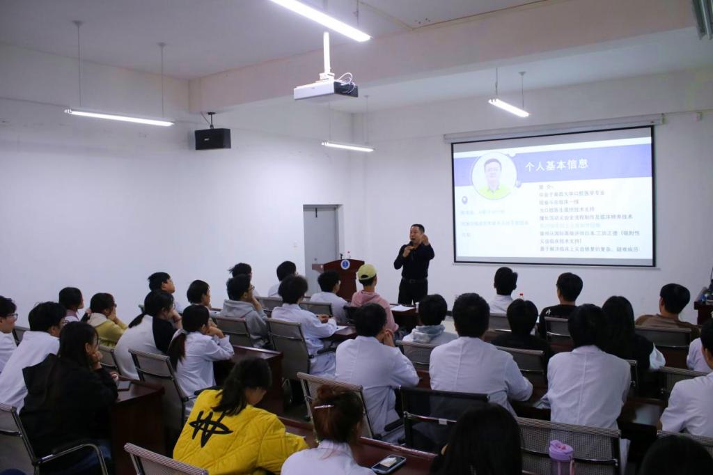 王良做主题为《平台·机遇·成长》的主题宣讲。他从公司历史、企业文化、人才培养模式、人才培养团队实力、实习待遇和工作进阶进度等方面详尽介绍了深圳新致美的相关情况,他以口腔医学技术专业毕业生在深圳新致美成长与发展的生动案例让员工深入了解了公司在珍惜人才、培养人才、留住人才方面等方面提供的实力保障和待遇。他表示公司在全国很早就布局了16家子公司,更好地方便当地老百姓能够近距离得到口腔方面的医疗服务。公司对人才非常重视,16家子公司老总都是从一线员工一步一步成长起来,成为公司的合作伙伴,一直跟公司共进退,知人善用,希望yl23411口腔医学技术专业更多有天赋、有志向的同学能够加入到公司团队中来。