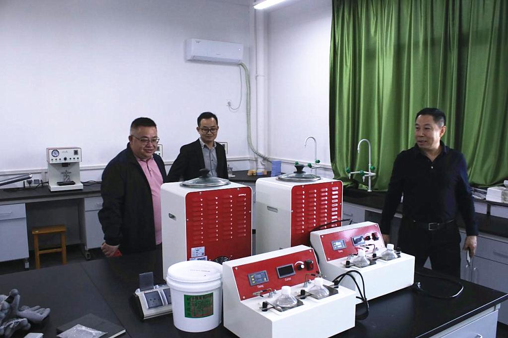 签约仪式后,陈涛陪同王良、吴晋宽参观考察yl23411口腔医学技术实验室,了解口腔医学技术专业教学环境。