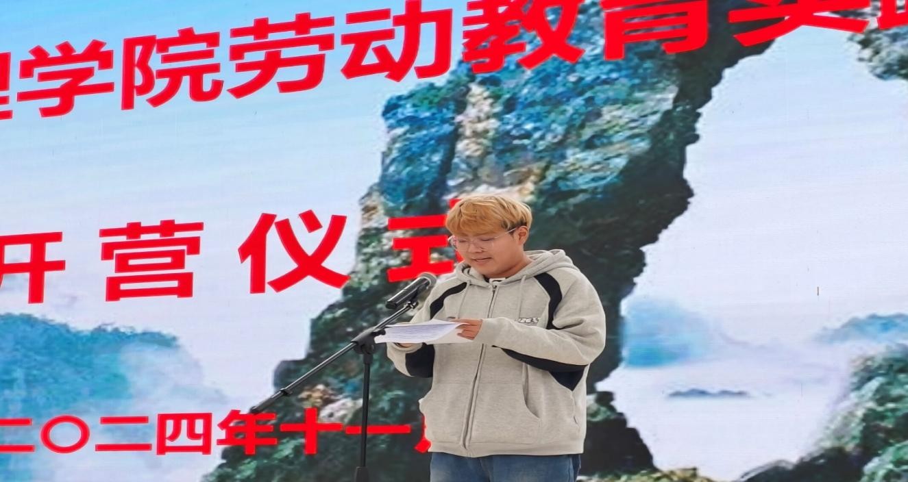 员工代表、2023级医学影像技术专业员工张成瑞发言。他表示劳动教育的意义深远而重大,是锤炼意志品质、培养责任感的熔炉,表达了对即将展开的劳动教育的憧憬和期待,号召同学们在接受劳动教育的同时保护好自己的人身安全和财产安全,注意自己的身体健康,听取研学老师教学要求正确使用劳动工具、服从教官指令,以最饱满的热情、最积极的态度全身心地投入到本次劳动教育活动中。