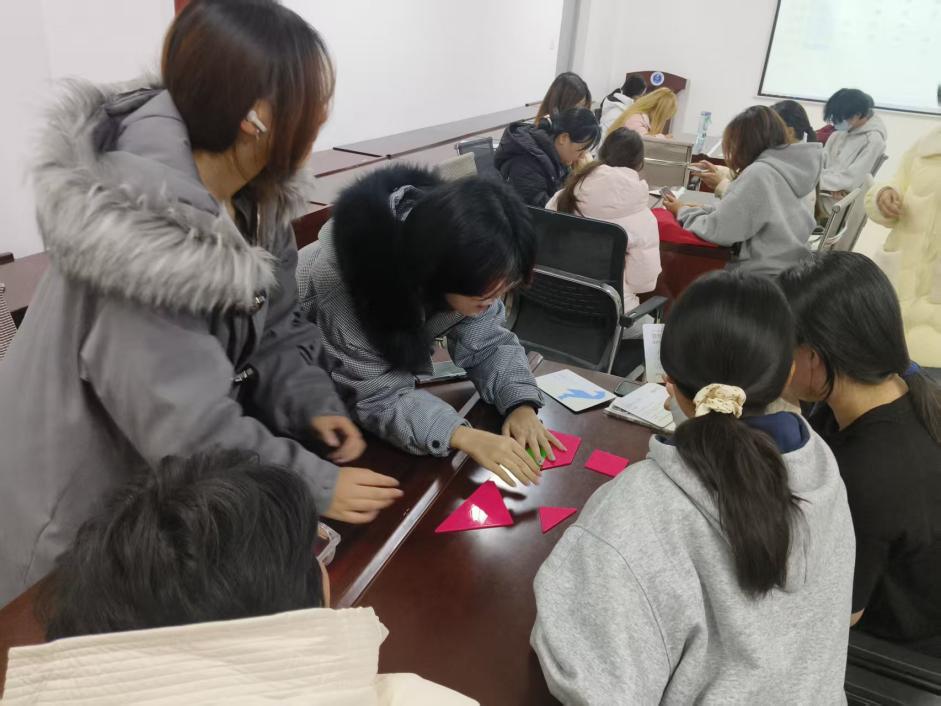 活动过程中,现场气氛热烈而有序。1-6组的同学们专注于手中的拼图,时而因缺少关键板块陷入思考,时而积极向第七组反馈需求;第七组的同学则忙碌地穿梭在各小组之间,耐心倾听诉求,快速协调资源,既要确保各小组的需求得到满足,又要兼顾整体进度,充分展现了统筹规划与沟通协调的能力。大家各司其职、密切配合,有的小组通过清晰的表达快速获得所需板块,有的小组在协作中摸索出高效的沟通方式,还有的小组在遇到困难时相互鼓励、共同探讨。原本零散的七巧板,在大家的齐心协力下,逐渐拼成了完整的图案,每一次成功拼接都伴随着同学们的欢呼与掌声,团队的凝聚力在欢声笑语中不断升温。
