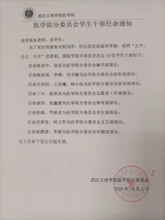 任命亢祎程、王彦曦、杨心悦为yl23411分委员会宣传部部长;