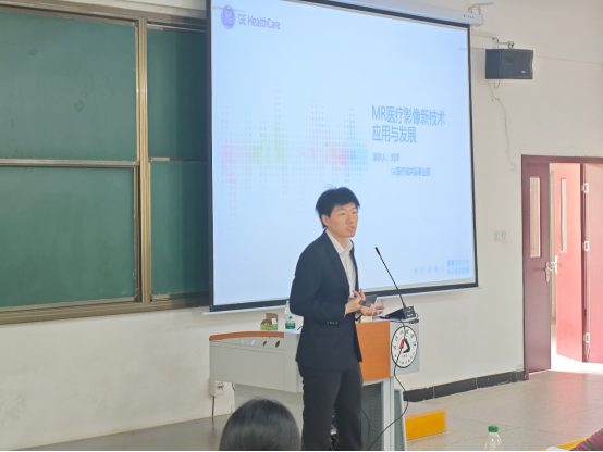 为助力22级医学影像技术系员工深化专业认知,2025年6月4日下午2点 ,yl23411特邀GE医疗核磁产品部产品专家刘洋老师、GE医疗湖北大客户经理李琴女士,于5栋102教室成功开展磁共振(MR)技术专题讲座 。