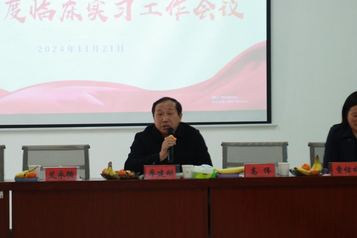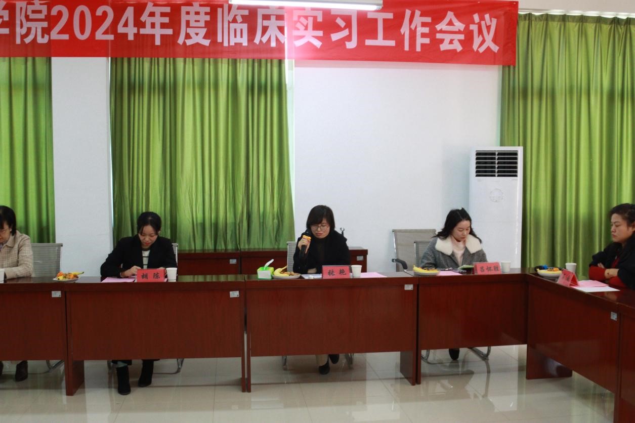 曹佑梅做《2024年度护理专业毕业实习工作半程总结》报告。她反馈了yl234112021级护理学(本科)和2023级护理(专科)专业近5个月的毕业实习工作管理情况和取得的成绩,指出员工在临床护理技能、临床思维能力护理专业知识、人文关怀素养、综合能力等方面取得显著提升,这都与实习医院的精心组织和带教老师的高质量带教密不可分,特别是11月6日,极目新闻记对公司护理专业员工丁可、李慧语、廖刘洋、王亭、张悦、朱子越等多次收到病人的感谢信的同学进行了新闻报道后,公司师生备受鼓舞。她表示临床实习对员工求职就业起到了至关重要的作用,将近一步紧密实习医院和公司公司的合作与沟通,保证员工圆满完成后半程的实习任务。