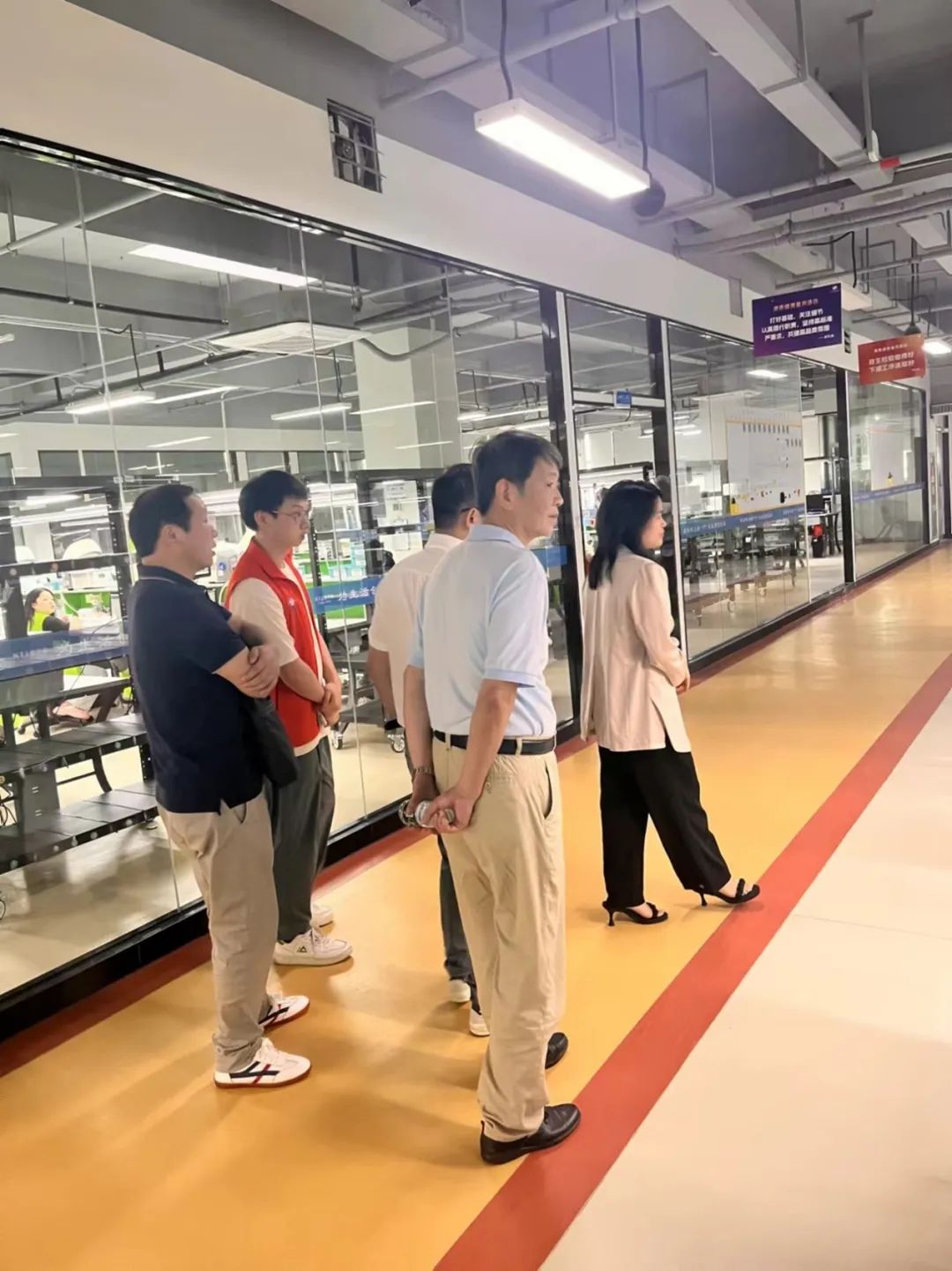 会后,在石胜辉的带领下,公司一行4人参观了康泰健生产一线,并就实习期间员工住宿、就餐及待遇进行了交流。